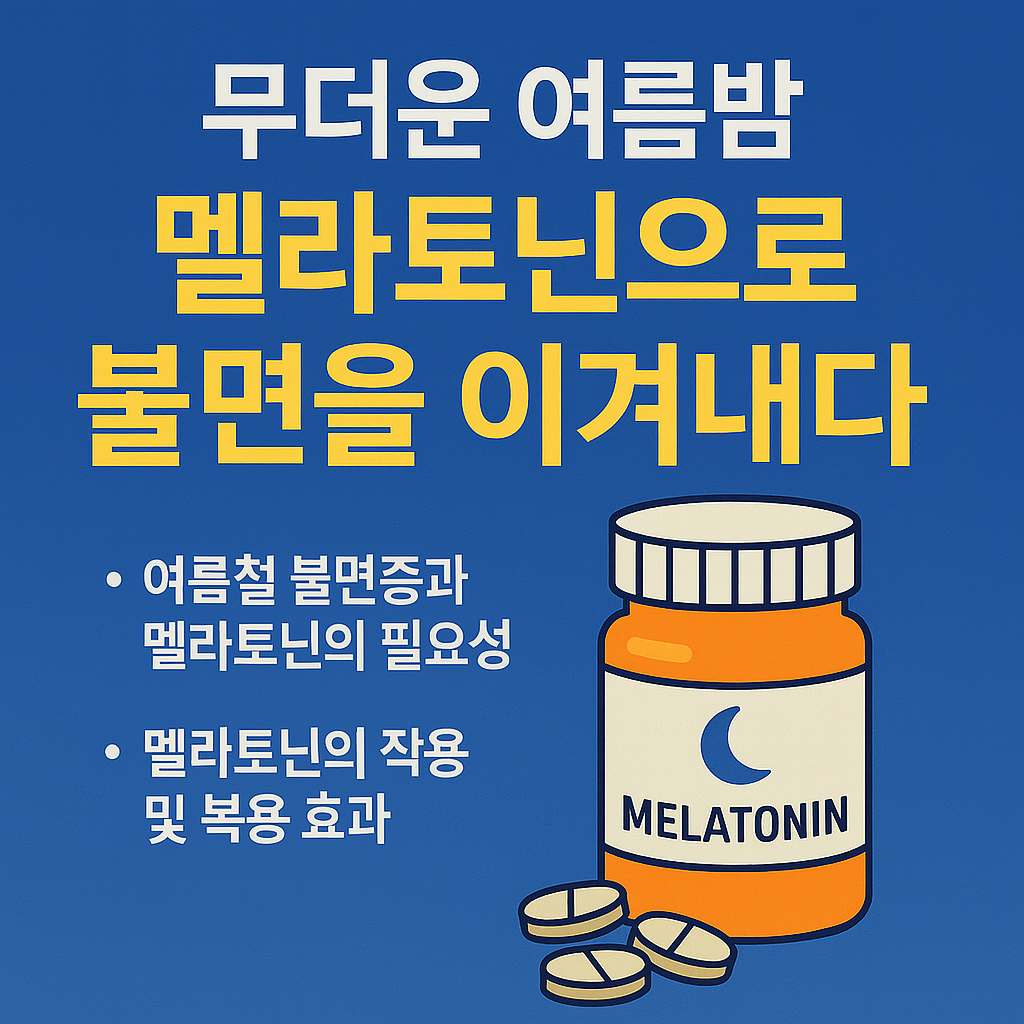 여름철 수면을 방해하는 여러 요인이 겹칠수록 우리 몸의 생체리듬은 쉽게 흐트러질 수 있습니다. 이럴 때 수면제를 사용하는 것도 하나의 방법이지만, 보다 자연스럽고 생리적인 방식으로 수면을 회복하고자 한다면 멜라토닌이 더 적합한 대안이 될 수 있습니다.